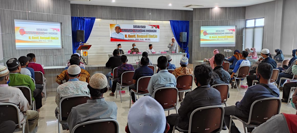 Barabai – Anggota DPRD Provinsi Kalimantan Selatan H Gusti Rosyadi Elmi, Lc Sosialisasikan Undang-undang (UU) Nomor 7 Tahun 2017 tentang Pemilihan Umum (Pemilu) beserta Peraturan Daerah (Perda) Nomor 14 Tahun 2014 tentang Dana Cadangan Dalam Rangka Pelaksanaan Pemilu Kepala Daerah bertempat di Aula Pemerintah Kabupaten Hulu Sungai Tengah, Jumat siang (26/2/2021).