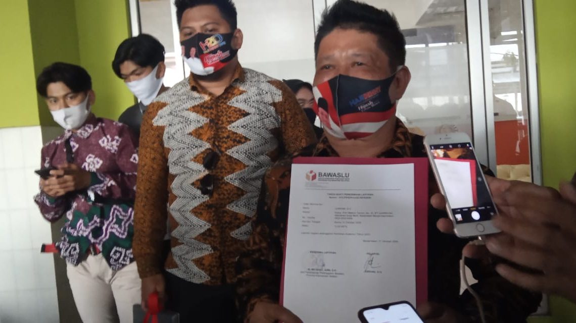 Ketua Tim Divisi Hukum pasangan calon (paslon) H Denny Indrayana-Difriadi Darjat (H2D) Jurkani secara resmi melaporkan dugaan pelanggaran pemilu ke Bawaslu Provinsi Kalsel, Jumat (02/10/2020) siang.