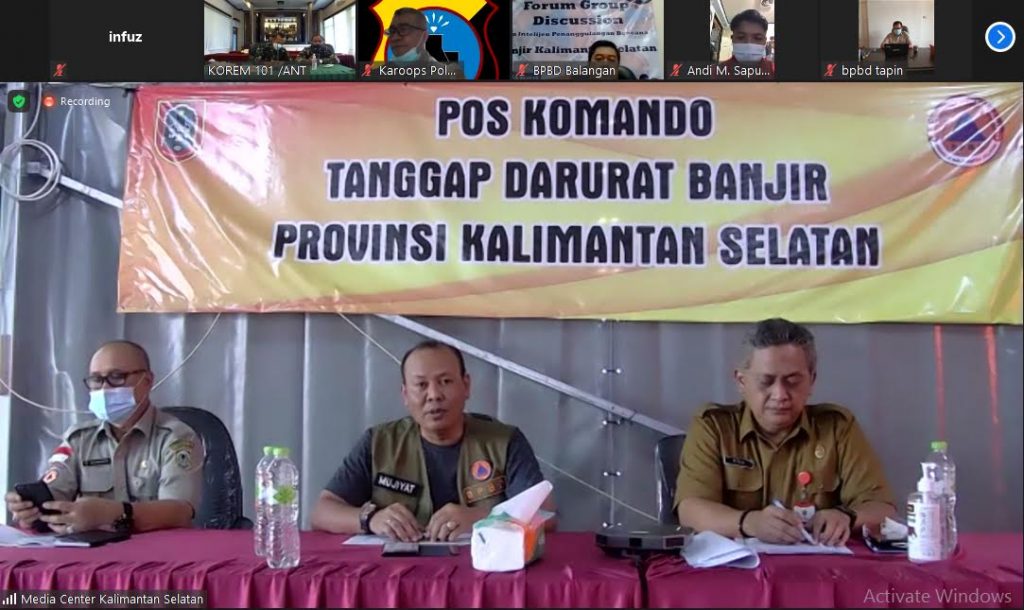 Kalsel-Perkembangan situasi sudah Banjir semakin membaik di Kalimantan Selatan, Kasi Ter Kasrem 101/Antasari, Kolonel Kav Sindhu Hanggara menyampaikan amanat terkait status tersebut pada Video Conference Pos Komando, Selasa (2/2/2021).