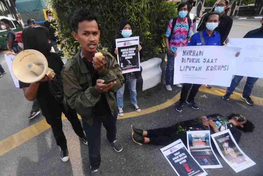 “Nurhadi juga ditampar, dipiting, dipukul di beberapa bagian tubuhnya. Untuk memastikan Nurhadi tidak melaporkan hasil reportasenya, dia juga ditahan selama dua jam di sebuah hotel di Surabaya,” kata Wahyu.