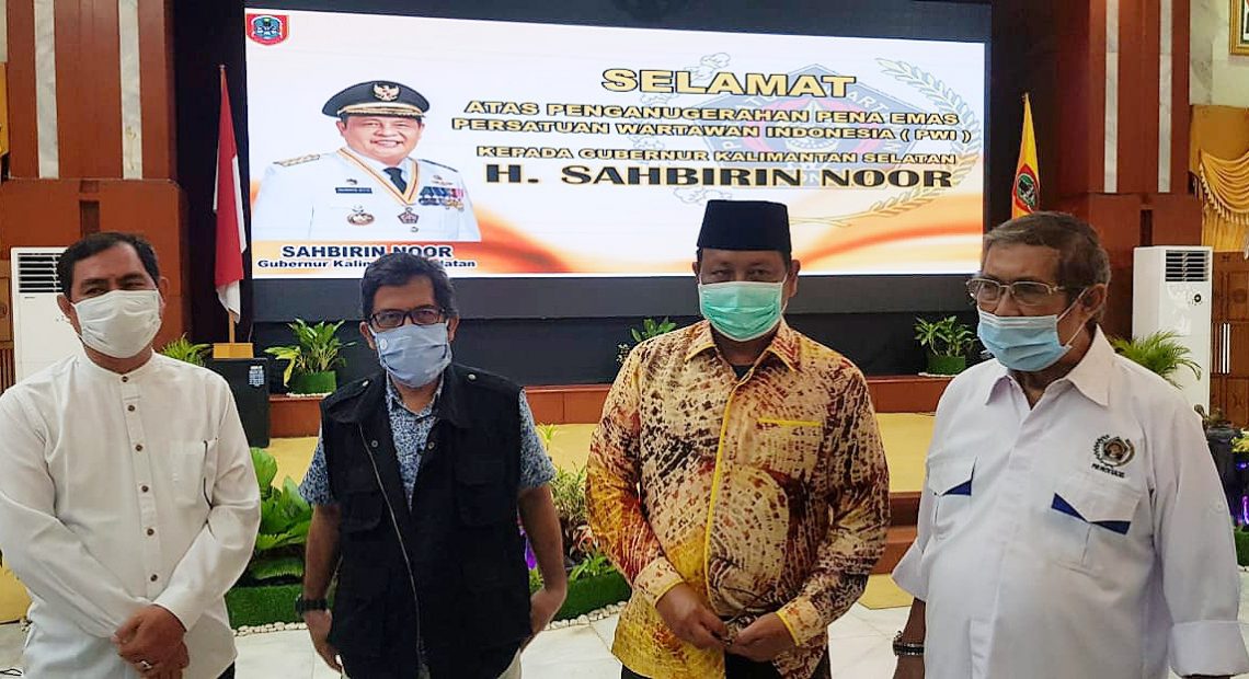 Banjarmasin –Gubernur Kalimantan Selatan Sahbirin Noor menerima anugerah Pena Emas tahun 2021, dari Persatuan Wartawan Indonesia (PWI) Pusat. Penyematan dilakukan secara virtual, oleh ketua PWI Pusat Atal S Depari.
