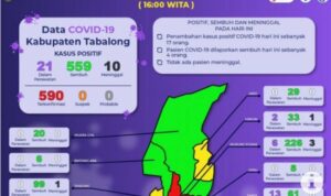Tanjung – Status nol kasus positif covid Tabalong akhirnya jebol hari ini, sebelumnya hampir satu bulan data kasus positif masih bertahan diangka nol pasca kesembuhan 542 warganya.