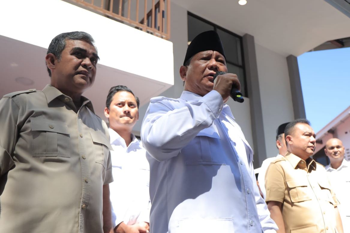 Ketua Umum Partai Gerindra Prabowo Subianto berbicara mengenai loyalitas kader di acara peresmian kantor Badan Pemenangan Presiden, Sabtu (7/1/2023) di Jakarta. Dia mengatakan, apabila ada kader yang merasa sudah tidak cocok dengan garis perjuangan Partai Gerindra dipersilakan untuk keluar.