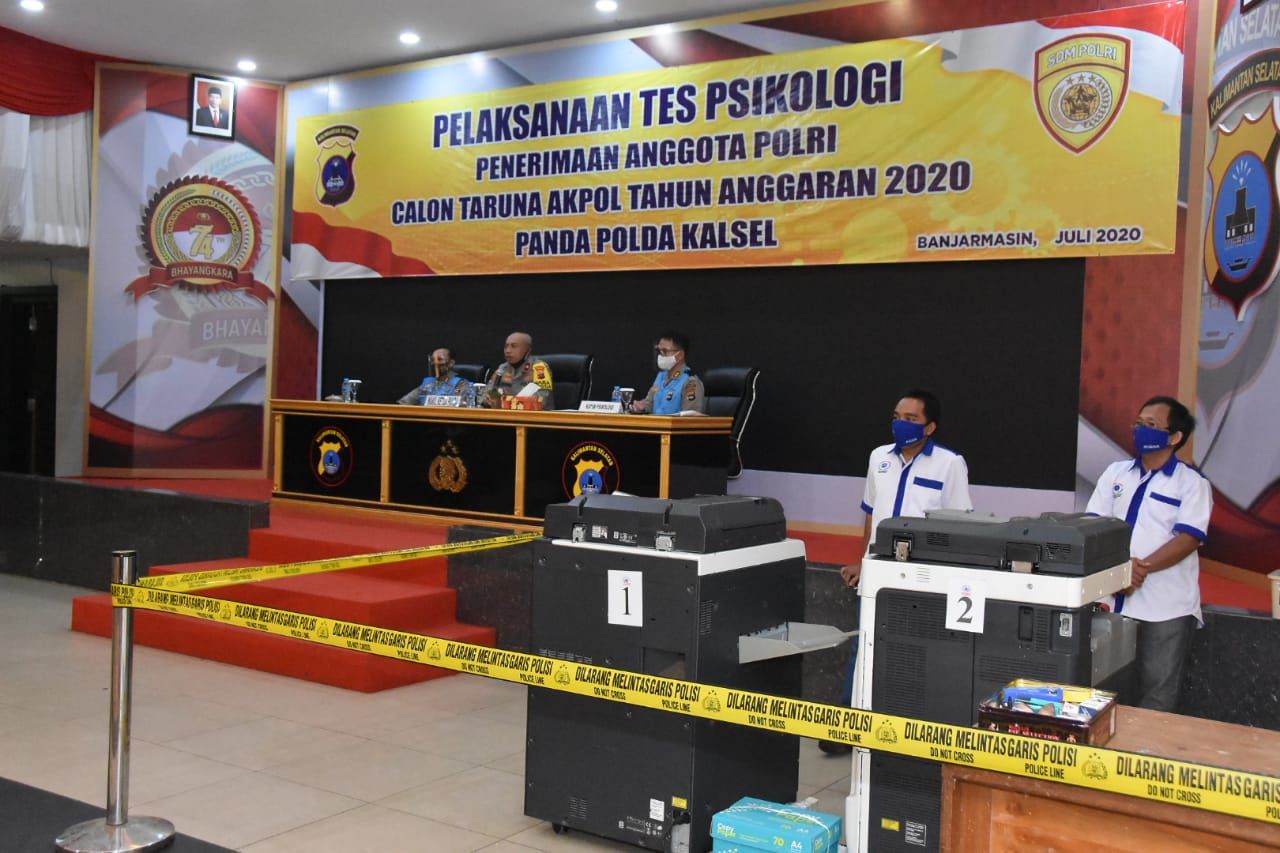 Banjarmasin – Seleksi penerimaan Taruna Akademi Kepolisian (Akpol) di tingkat Panitia Daerah (Panda) Kepolisian Daerah Kalimantan Selatan (Polda Kalsel) Tahun Anggaran 2020 memasuki tahap Pemeriksaan Psikologi, Kamis (9/7/2020) pukul 07.20 Wita, bertempat di Aula Bhayangkari Mathilda Batlayeri Polda Kalsel.