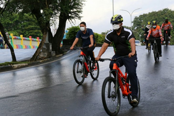 Safrizal beserta rombongan mengayuh santai sepeda mereka berkeliling kota Banjarmasin sambil melihat keadaan dan rutinitas masyarakat Banjarmasin di pagi hari.