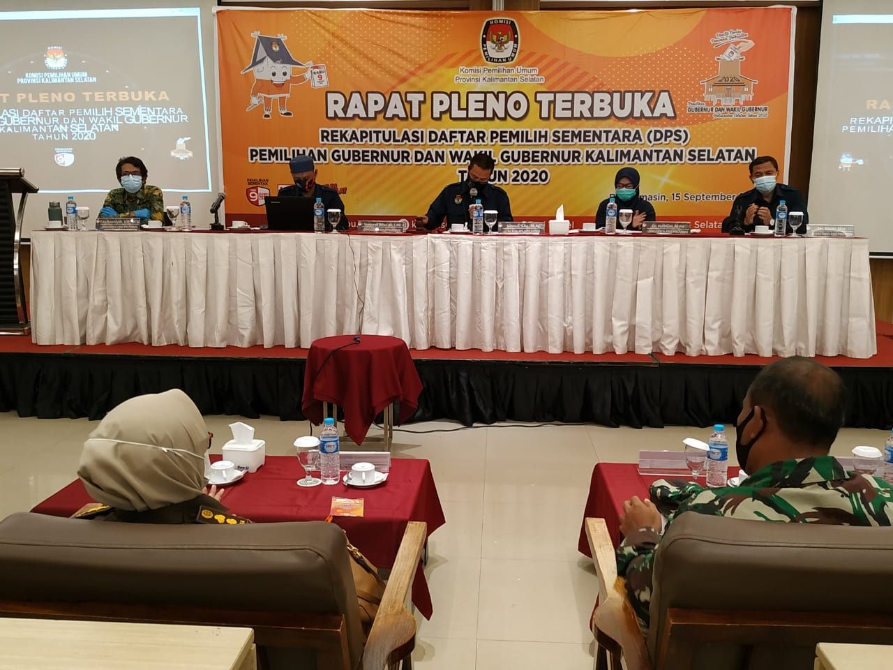 BANJARMASIN- Komisi Pemilihan Umum (KPU) Provinsi Kalimantan Selatan usai menggelar rapat pleno terbuka rekapitulasi daftar pemilih sementara provinsi pemilihan Gubernur dan Wakil Gubernur Kalsel tahun 2020, Selasa (15/9/2020). Mengumumkan jumlah Daftar Pemilih Sementara (DPS) untuk pemilihan Gubernur dan Wakil Gubernur Kalsel tahun 2020 sebanyak 2.787.624.