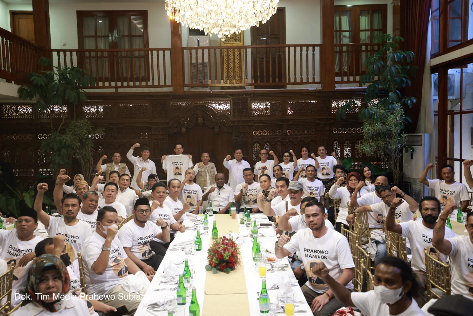 Keterangan pers yang diterima kantor pusat Serikat Media Siber Indonesia (SMSI) di Jakarta Jumat (17/2/2023) menjelaskan,Prabowo mengaku kaget dengan baju yang dikenakan para relawan tersebut, bertuliskan ‘Prabowo Mania 08’.