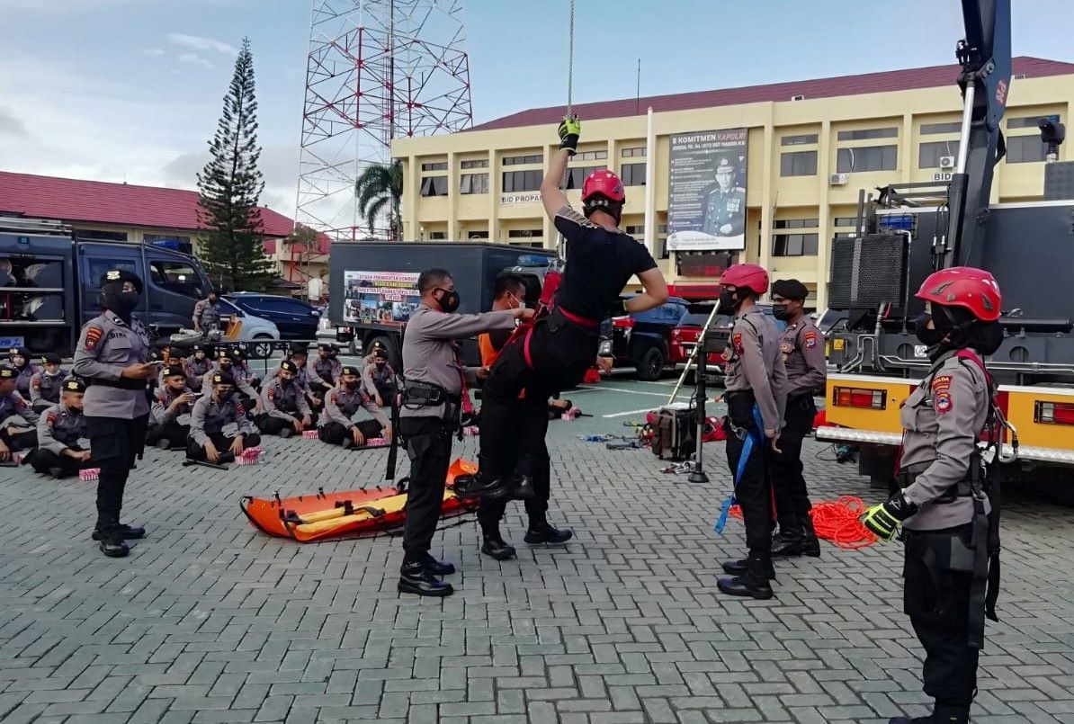 Banjarmasin, Polda Kalsel – Terkait beberapa peristiwa alam yang terjadi beberapa hari terakhir akibat peningkatan curah hujan disertai angin kencang di wilayah Kalimantan Selatan (Kalsel). Direktorat Samapta Polda Kalsel menggelar pelatihan Search And Rescue (SAR).