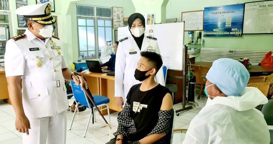 Banjarmasin – Dengan menerapkan protokol kesehatan yang ketat, 7 Tim Vaksinator (Nakes) TNI AL – Lanal Banjarmasin kembali gencarkan Servak (Serbuan Vaksinasi) Covid-19 kepada masyarakat Maritim (Pesisir) Kec. Banjarmasin Selatan dan Kec. Banjarmasin Utara, dari usia remaja sampai dengan dewasa dengan menggunakan Vaksin jenis Sinovac yang sudah terbukti efektif, aman dan sehat digunakan oleh seluruh masyarakat Indonesia, Jumat (27 Agustus 2021).