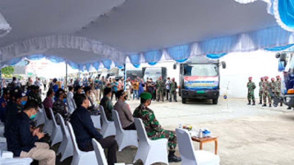 Penyerahan bantuan dari TNI Angkatan Laut (AL) tersebut berlangsung di Pelabuhan Umum Trisakti Banjarmasin dengan dihadiri oleh Gubernur Kalsel, Wakil Ketua DPRD Kalsel, Kapolda Kalsel Irjen Pol Drs. Rikwanto, S.H.m M.Hum., Kajati Kalsel, Danrem 101/Antasari, Direktur Polair Polda Kalsel Kombes Pol Nyoman Budiarja, S.I.K., M.Si., dan Walikota Banjarmasin.