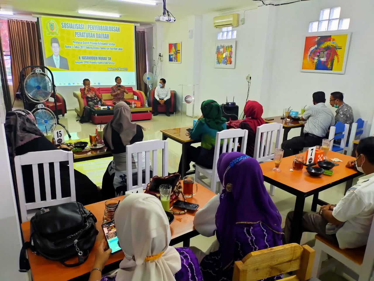 Sosialisasi Perda (Sosper) tersebut menghadirkan narasumber anggota Persatuan Artis, Penyanyi, Pencipta Lagu dan Pemusik Republik Indonesia (PAPPRI) Kalsel Khairiadi Asa bertempat di Cafe Baimbai di Handil Bakti Kabupaten Batola, Sabtu (27/3/2021) malam.