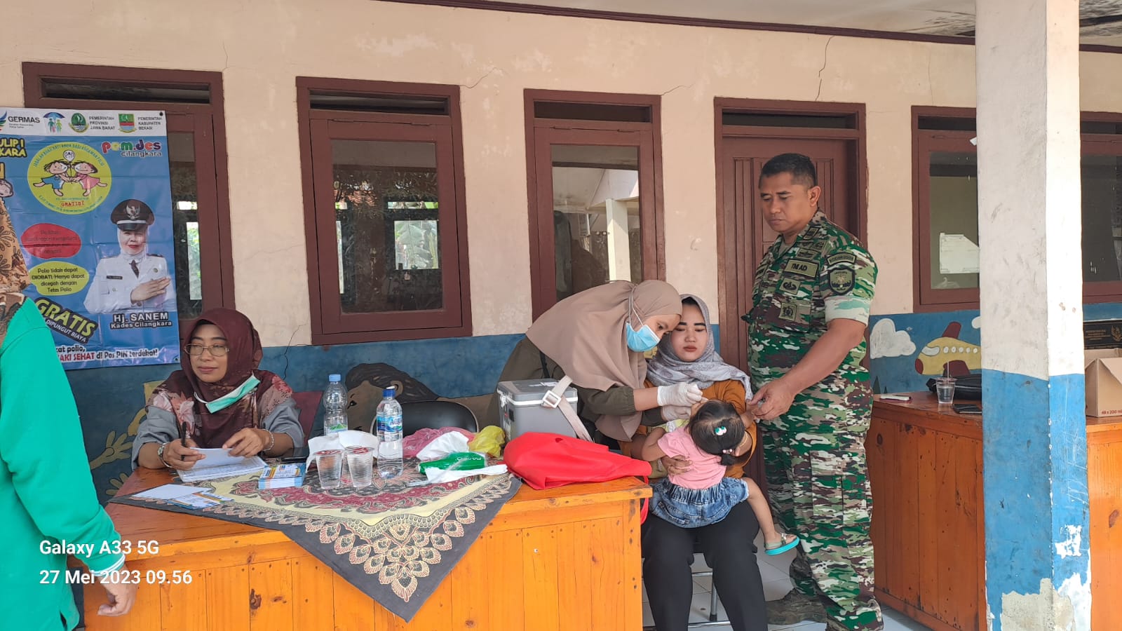 Bekasi – Selamatkan Balita Anggota Koramil 12 Serangbaru Peltu Fatikin Kodim 0509 Kabupaten Bekasi, berikan pendampingan pada Sub Pin Polio Putaran ke 2 di Desa Cilangkara Kecamatan Serangbaru Kabupaten Bekasi, Pada Senin 29/5/2023