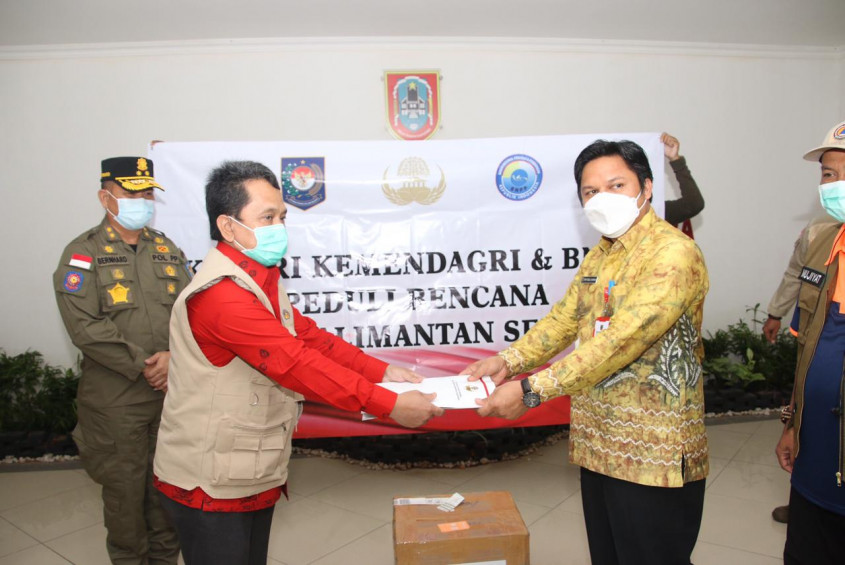 Banjarbaru – Dalam rangka peduli bencana KORPRI Kementerian Dalam Negeri (Kemendagri) dan Badan Nasional Pengelolaan Perbatasan (BNPP) menyalurkan bantuan untuk korban yang terdampak Banjir di Kalimantan Selatan. Penyerahan bantuan dilakukan oleh Sekretaris Pengurus KORPRI Kemendagri, Yedi Rahmat dan diterima oleh Pj. Sekda Kalimantan Selatan Roy Rizali Anwar di Banjarbaru, Jumat (29/1/21).