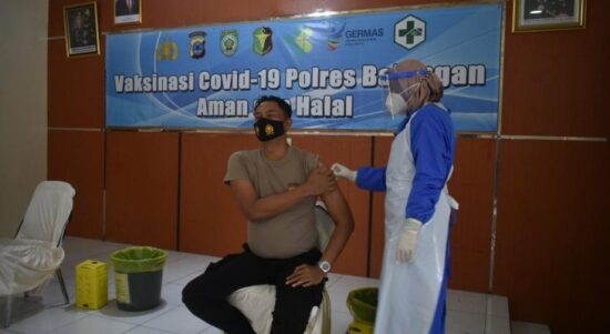 Paringin – Sebanyak 288 anggota Kepolisian Resor (Polres) Balangan menjalani vaksinasi Covid-19 yang dilaksanakan di aula Polres Balangan. Kapolres Balangan AKBP Nur