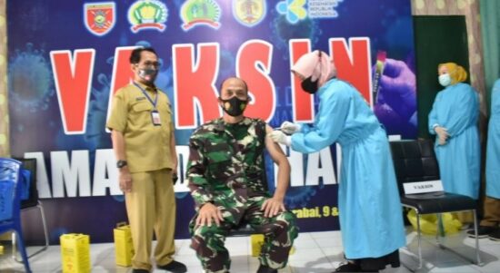 Barabai – Seluruh anggota Kodim 1002/Barabai dan anggota Yonif 621/Manuntung, Minvetcad VI/10 Barabai dan Poskes 06.10.09/Barabai mengikuti kegiatan serbuan vaksinasi tahap II