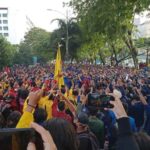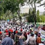 BANJARMASIN– Ratusan massa aksi gabungan mahasiswa se-Kalimantan Selatan (Kalsel) telah menduduki ruas jalan Lambung Mangkurat Kota Banjarmasin, tepatnya di bundaran dekat kantor