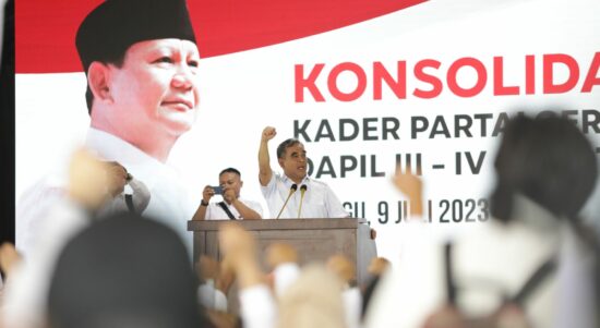 Sekjen Partai Gerindra Ahmad Muzani menghadiri konsolidasi akbar kader Gerindra di Kota Bekasi dan Kota Depok, Minggu (9/7). Ribuan kader Gerindra menyambut